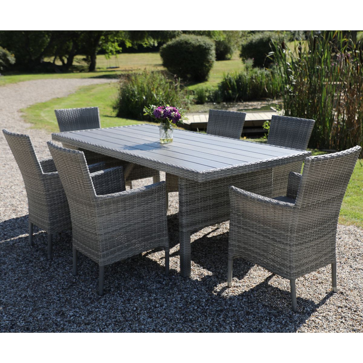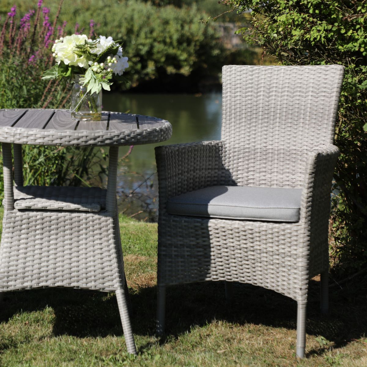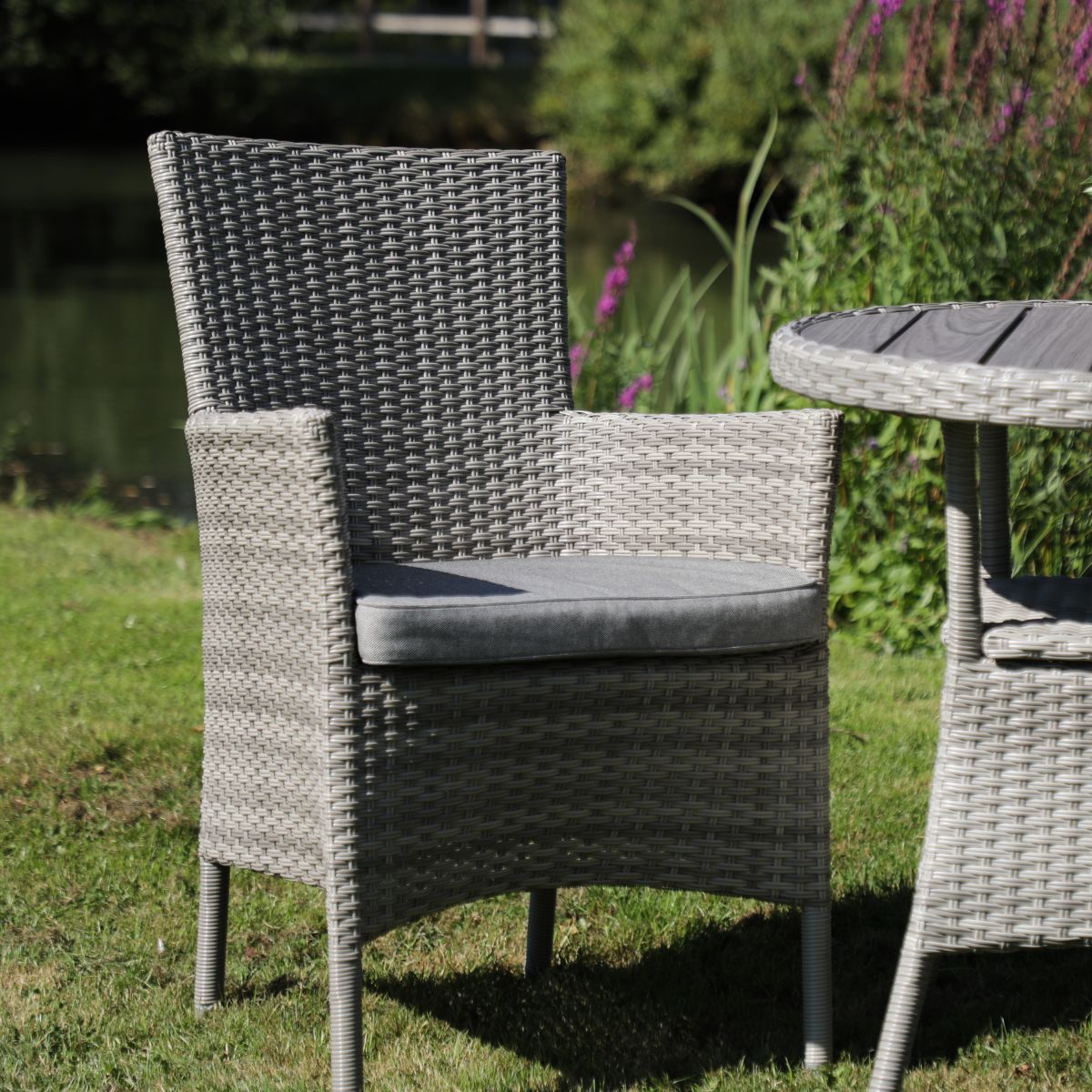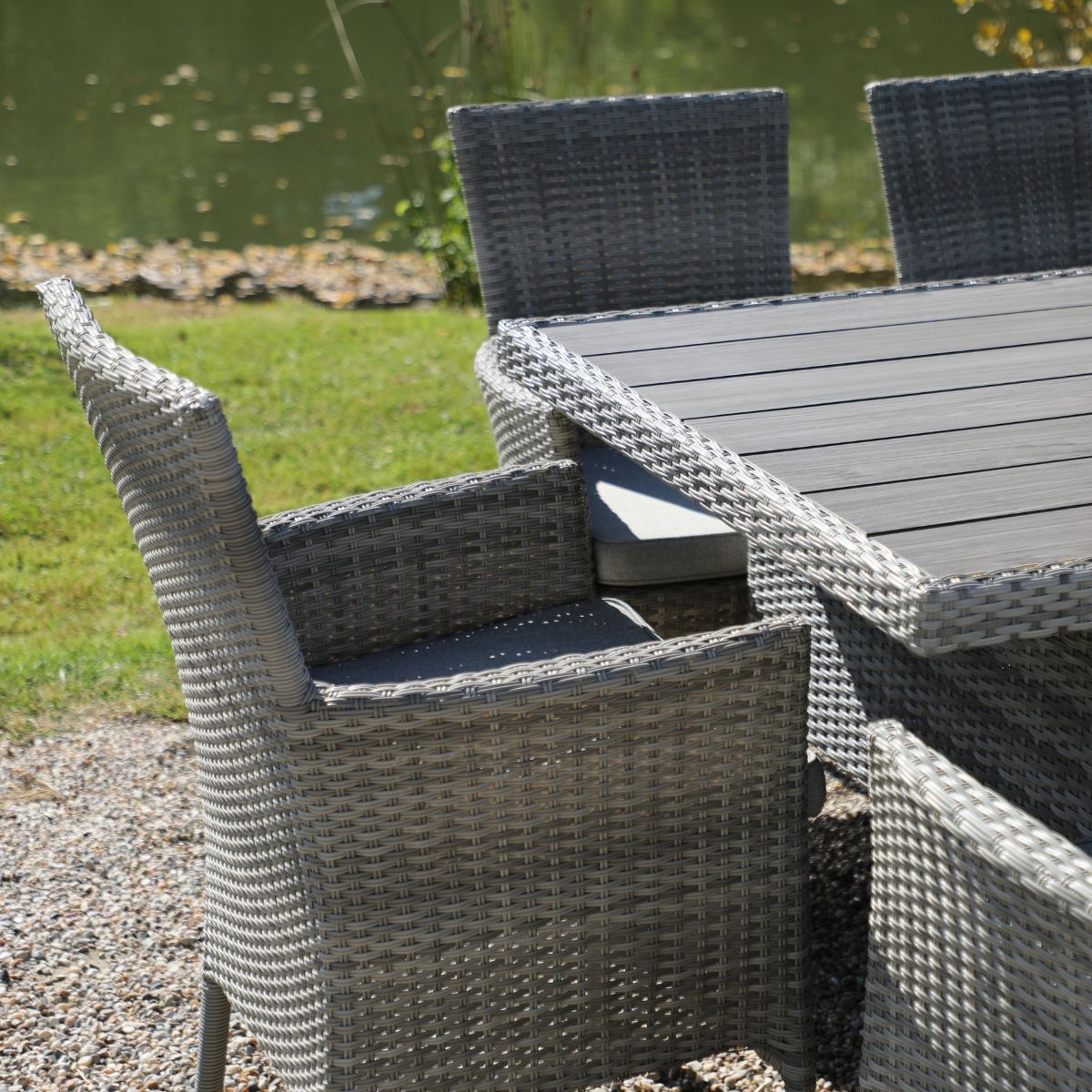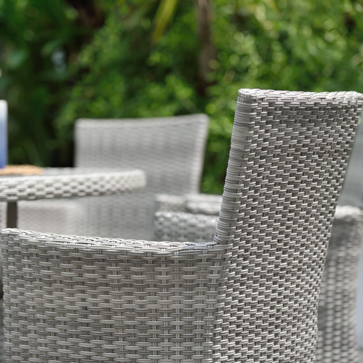 - Rattan sintético tejido, resistente y fácil de mantener